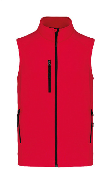 Drielaags, ademend, wind- en waterdicht softshell bodywarmervest met ritssluiting, borst en zijzakken. Met ademende middenlaag en micropolaire fleece binnenlaag. 95% polyester en 5% elastaan, 300 g/m². Product van het merk Kariban.