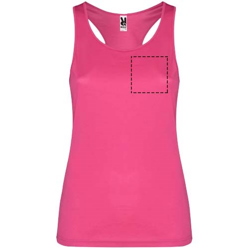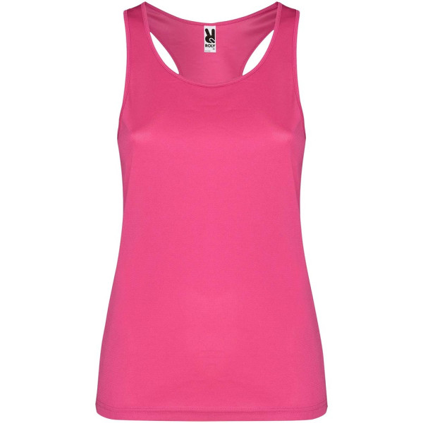 Technische, ademende, gemakkelijk te wassen en te drogen stof. Geribde armsgaten en halslijn. Racerback en zijnaden. Verwijderbaar label.