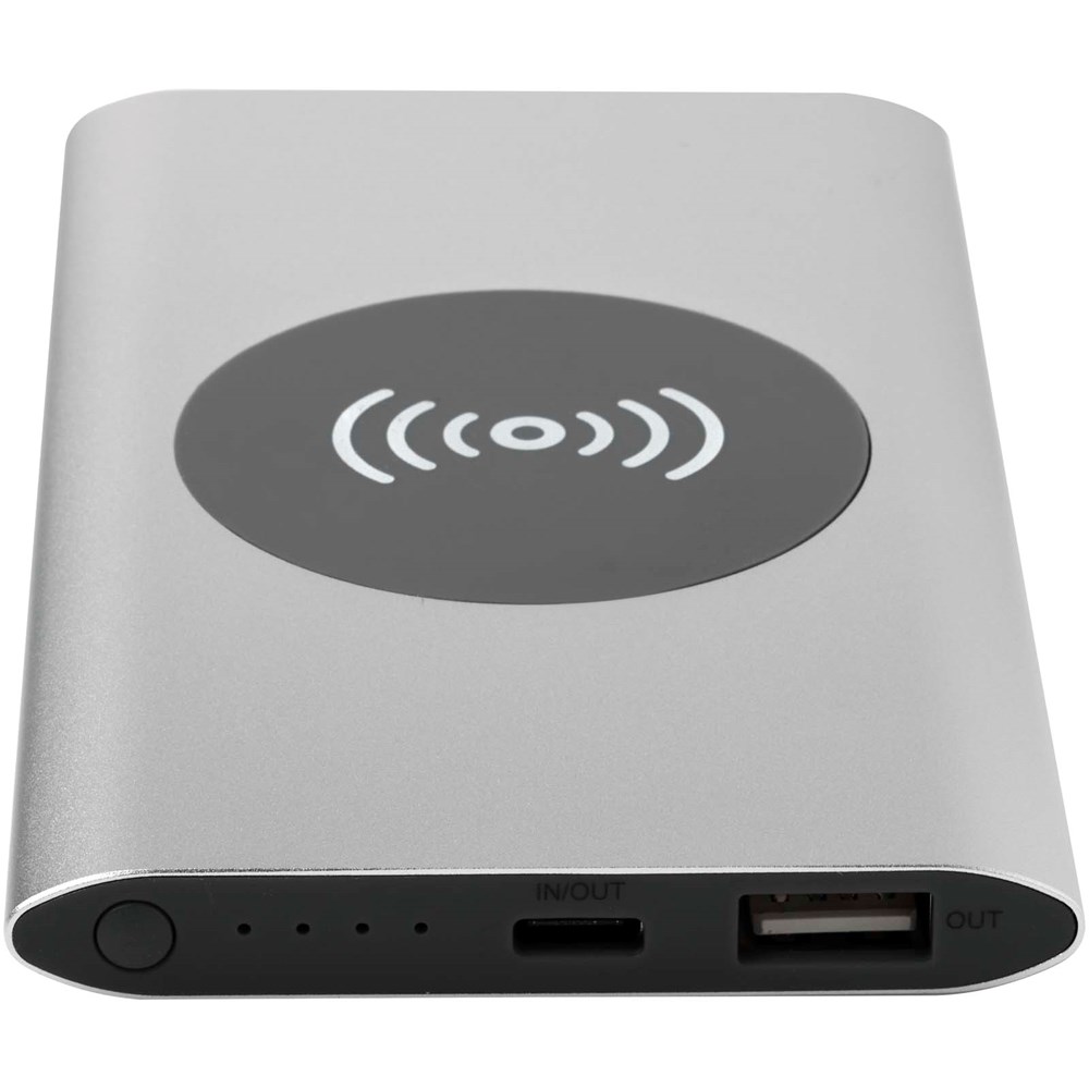 Powerbank met Type-C in/uitgangspoort en een USB-A-poort waardoor twee apparaten tegelijk kunnen worden opgeladen. Het ondersteunt ook 5 W draadloos opladen voor alle apparaten met Qi. De powerbank heeft een 4000 mAh lithium-polymeerbatterij die een totaal uitgangsvermogen levert van max. 10 W. Deze powerbank is gemaakt van 28% RCS gecertificeerd gerecycled plastic. Geleverd met een TPE Type-C naar USB-A-oplaadkabel.