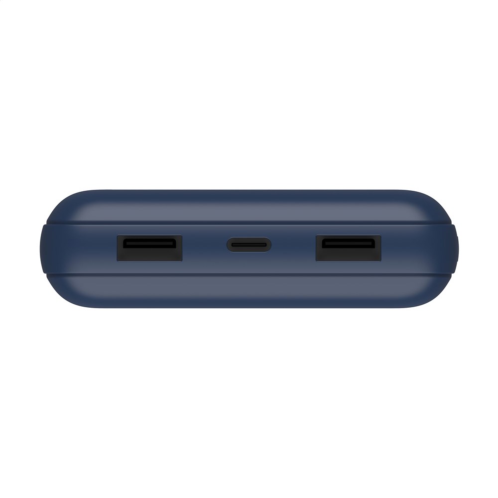 Powerbank 20.000 mAh van het merk Belkin. Met een behuizing van gerecycled kunststof. Laad razendsnel een smartphone en andere apparaten op met een vermogen tot 15W via twee USB-A-poorten en één USB-C-poort. Deze powerbank biedt tot 78 uur extra batterijduur. Genoeg voor het kijken van films, het voeren van FaceTime-gesprekken en het gebruik van navigatie-apps. Met LED-indicatielampje. De powerbank voldoet aan de luchtvaartveiligheidsnormen, dus je mag hem in je handbagage meenemen. Inclusief USB-A/USB-C-kabel en gebruiksaanwijzing. 100% plasticvrije verpakking. Gemaakt van plastic dat na gebruik is gerecycled. Per stuk verpakt.