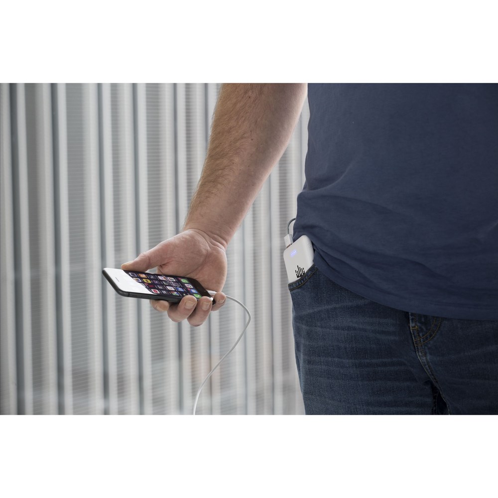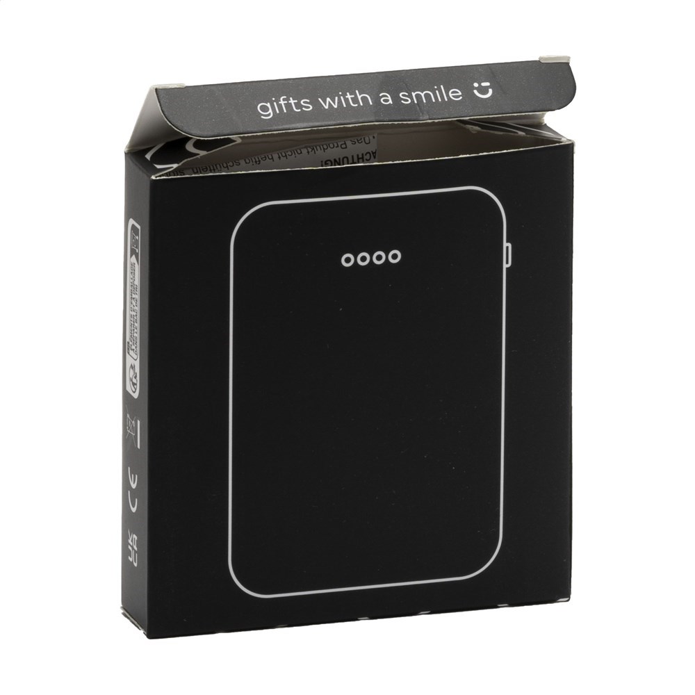 Kleine, lichte en zeer krachtige powerbank met ingebouwde lithium-polymeerbatterij (5.000 mAh). De behuizing is gemaakt van 100% RCS-gecertificeerd gerecycled ABS. Deze krachtpatser past gemakkelijk in je broekzak waardoor je hem comfortabel overal mee naar toe kunt nemen. Input 5V/2A. Dual output: 2 x 5V/2A. Inclusief USB-C oplaadkabel en gebruiksaanwijzing. RCS-gecertificeerd. Totaal gerecycled materiaal: 45%. Per stuk verpakt.