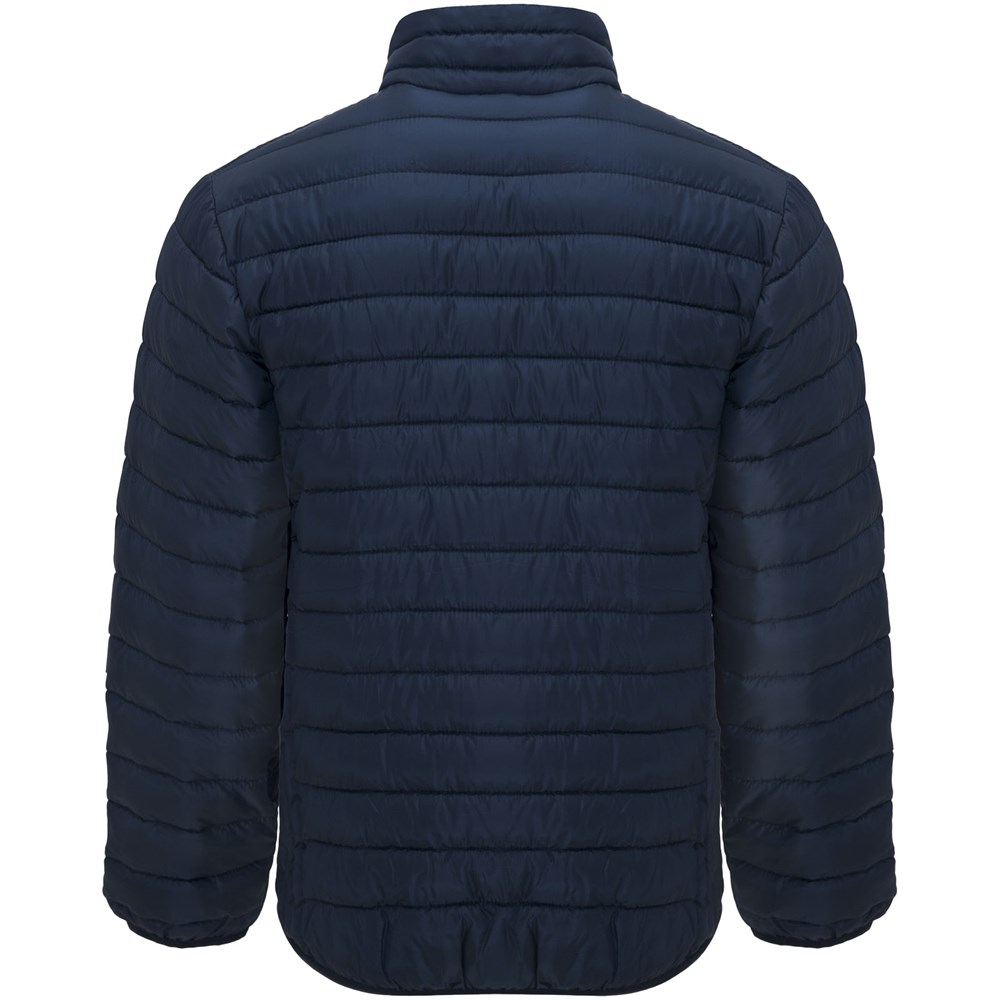 Gewatteerd herenjack met dons. Omgekeerde ritsen met bijpassende kinbeschermer en trekker. Twee voorzakken met rits. Bijpassende elastische rand in kraag, manchetten en zoom. Contrasterende binnenvoering. Inclusief opbergtas. Lichtgewicht en opvouwbaar kledingstuk. Verwijderbaar etiket. Waterafstotend. Winddicht. Het model is 184 cm en draagt maat L.