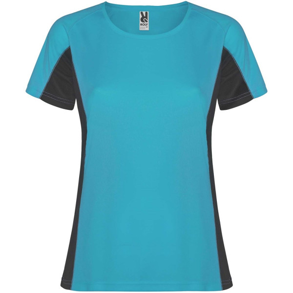 Technische en ademende stof. Een combinatie van twee polyesterstoffen: Hoofdstof van birdseye-stof, zijpanelen en binnenmouw van micro-geperforeerde stof. Ronde hals met binnenin versterkte bedekte naden. Verwijderbaar label.