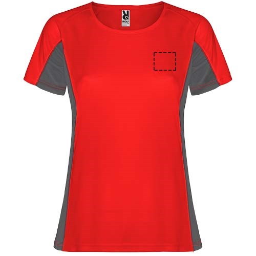 Technische en ademende stof. Een combinatie van twee polyesterstoffen: Hoofdstof van birdseye-stof, zijpanelen en binnenmouw van micro-geperforeerde stof. Ronde hals met binnenin versterkte bedekte naden. Verwijderbaar label.