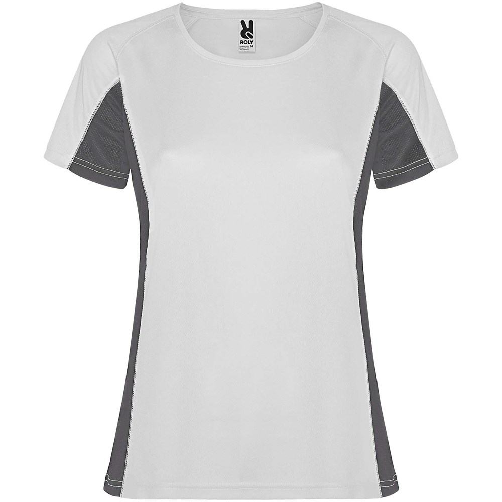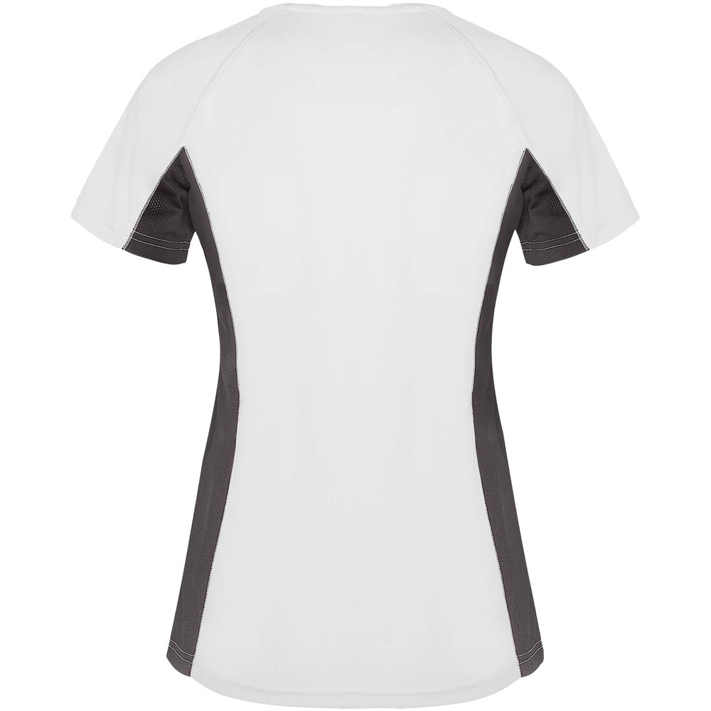 Technische en ademende stof. Een combinatie van twee polyesterstoffen: Hoofdstof van birdseye-stof, zijpanelen en binnenmouw van micro-geperforeerde stof. Ronde hals met binnenin versterkte bedekte naden. Verwijderbaar label.