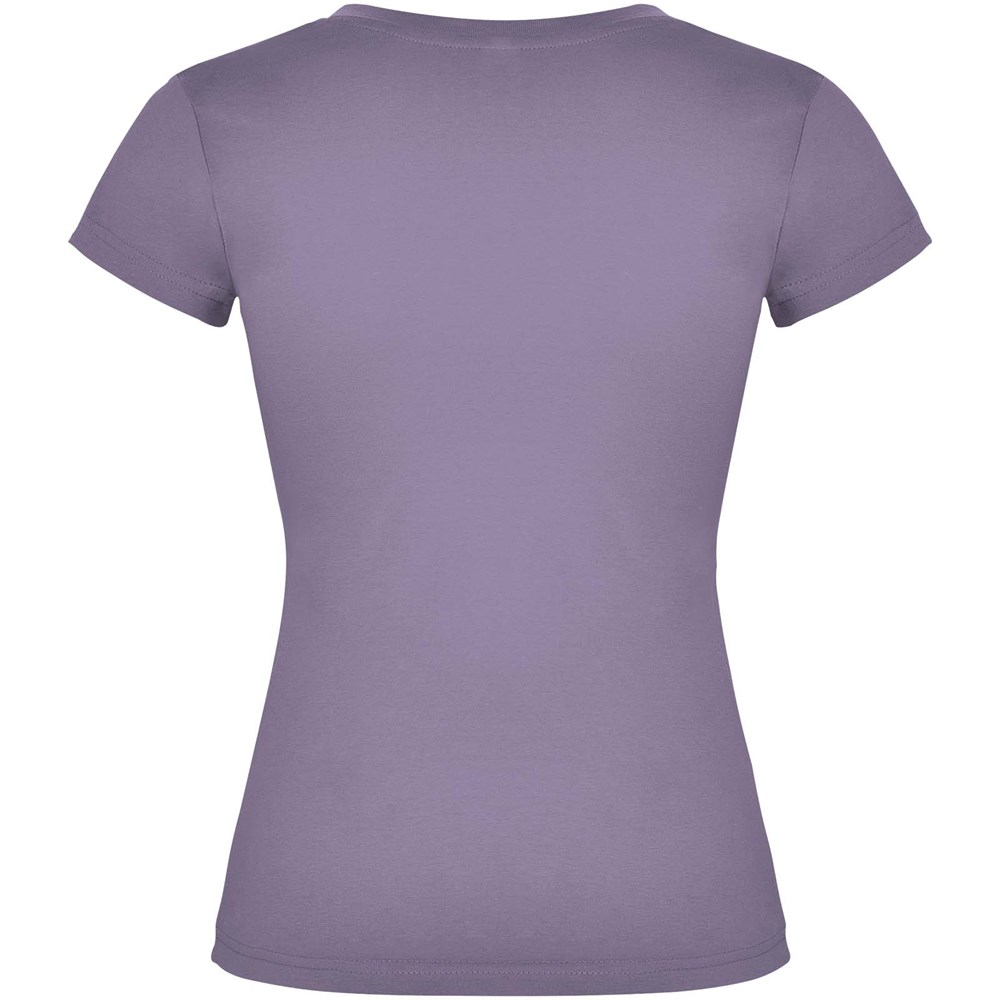 T-shirt met korte mouwen en V-hals voor dames, met 1x1 geribbelde afwerkingen. Slim-fit met zijnaden. Verwijderbaar etiket. Het model is 174 cm en draagt maat S.