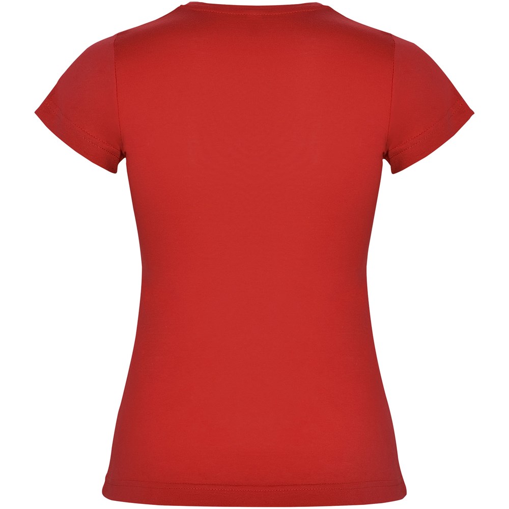 Getailleerd T-shirt met korte mouwen. 1x1 dubbellaags geribde ronde hals en bedekte naden van schouder tot schouder. Zijnaden. T-shirt verkrijgbaar in 21 kleuren. Verwijderbaar etiket. Het model is 168 cm en draagt maat S.
