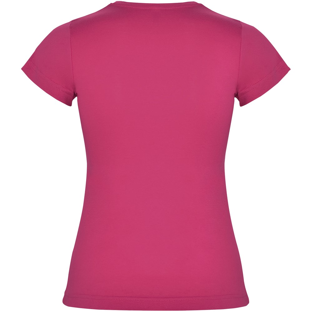 Getailleerd T-shirt met korte mouwen. 1x1 dubbellaags geribde ronde hals en bedekte naden van schouder tot schouder. Zijnaden. T-shirt verkrijgbaar in 21 kleuren. Verwijderbaar etiket. Het model is 168 cm en draagt maat S.