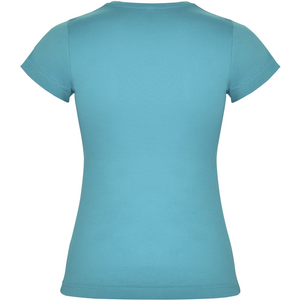 Getailleerd T-shirt met korte mouwen. 1x1 dubbellaags geribde ronde hals en bedekte naden van schouder tot schouder. Zijnaden. T-shirt verkrijgbaar in 21 kleuren. Verwijderbaar etiket. Het model is 168 cm en draagt maat S.