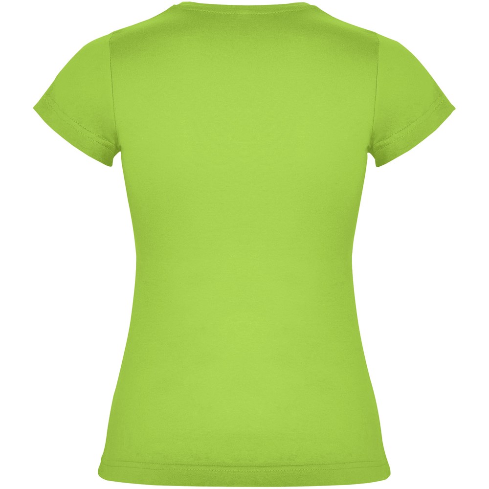 Getailleerd T-shirt met korte mouwen. 1x1 dubbellaags geribde ronde hals en bedekte naden van schouder tot schouder. Zijnaden. T-shirt verkrijgbaar in 21 kleuren. Verwijderbaar etiket. Het model is 168 cm en draagt maat S.