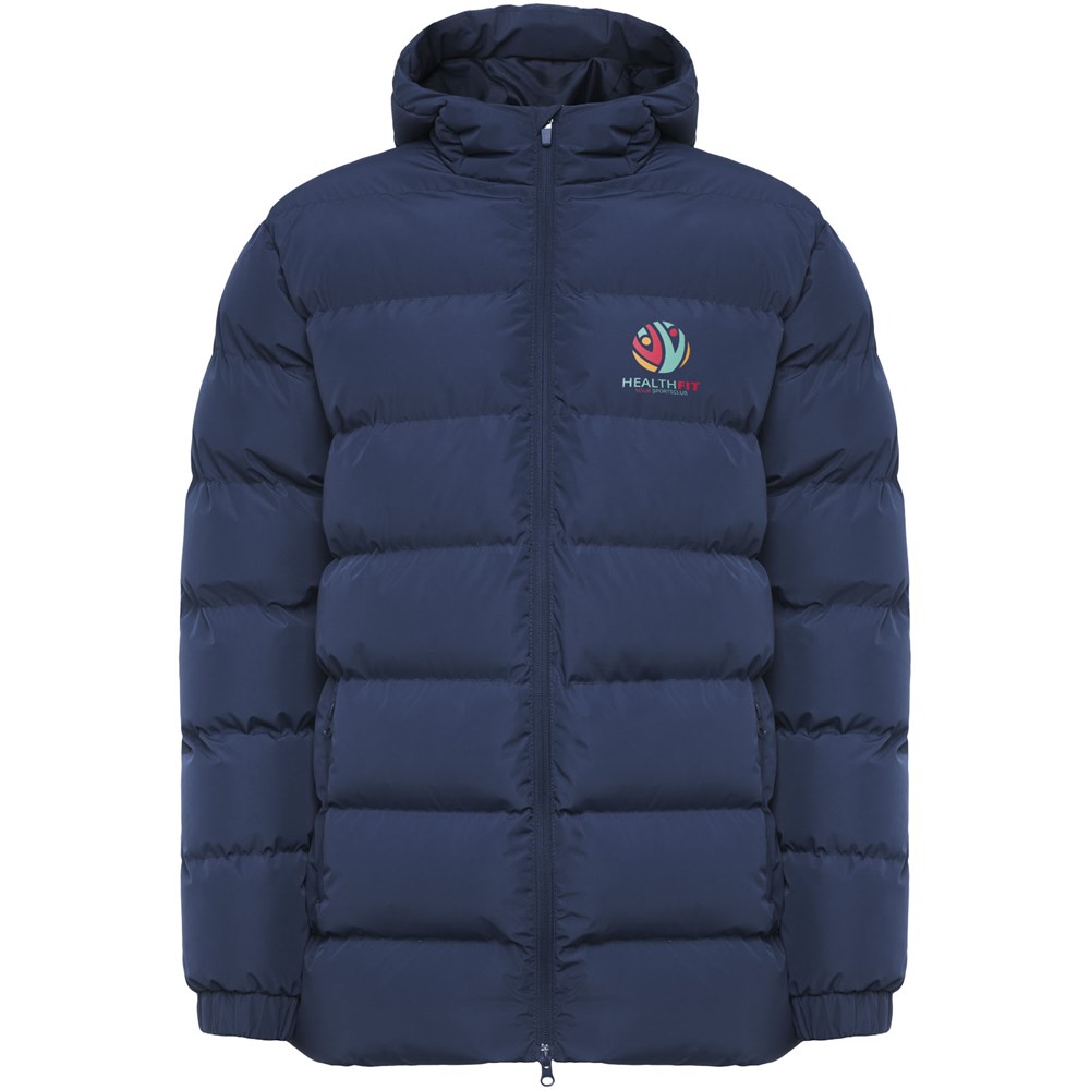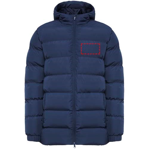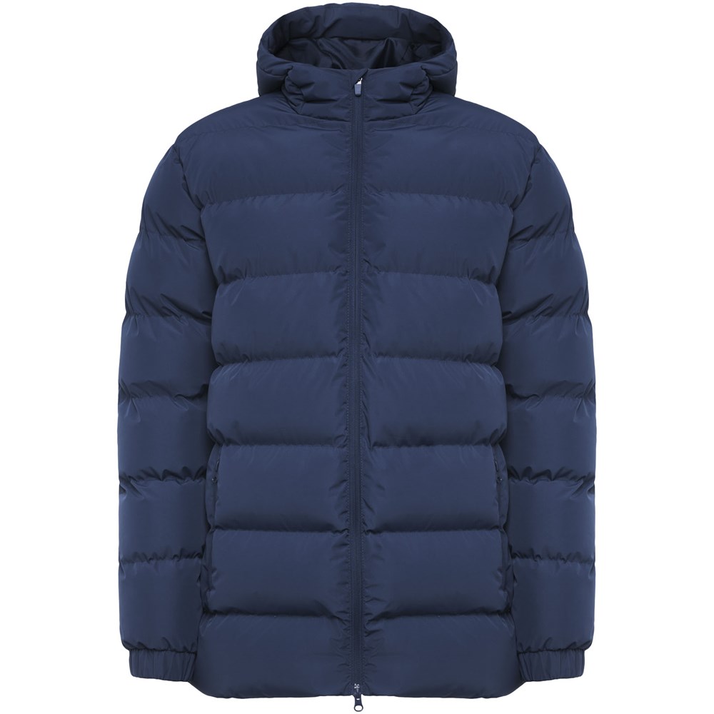 Gevoerde sportparka. Capuchon met klep. Rits aan de voorkant met bijpassende trekker en kinbeschermer. Elastische manchetten. Twee zijzakken met rits. Binnenzak links op de borst. Binnentoegang voor herverwerking. Verwijderbaar etiket. Waterbestendig. Winddicht.