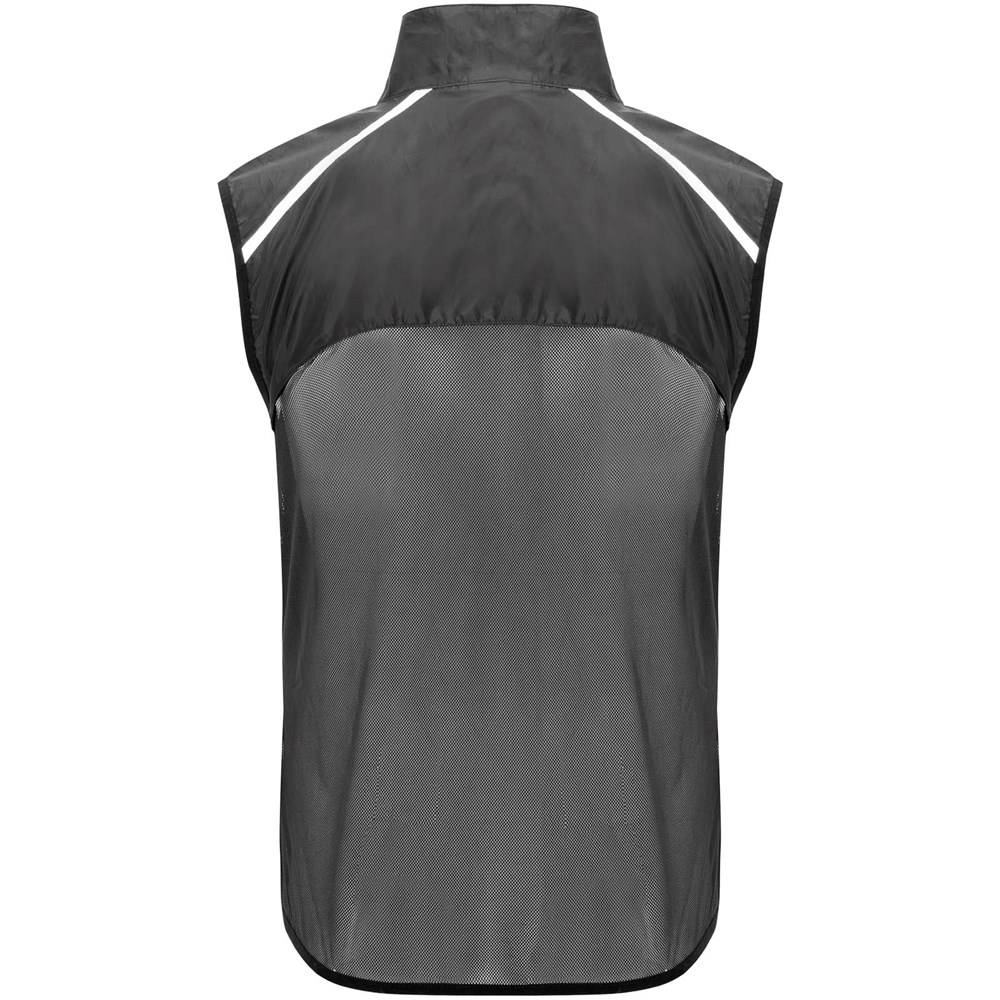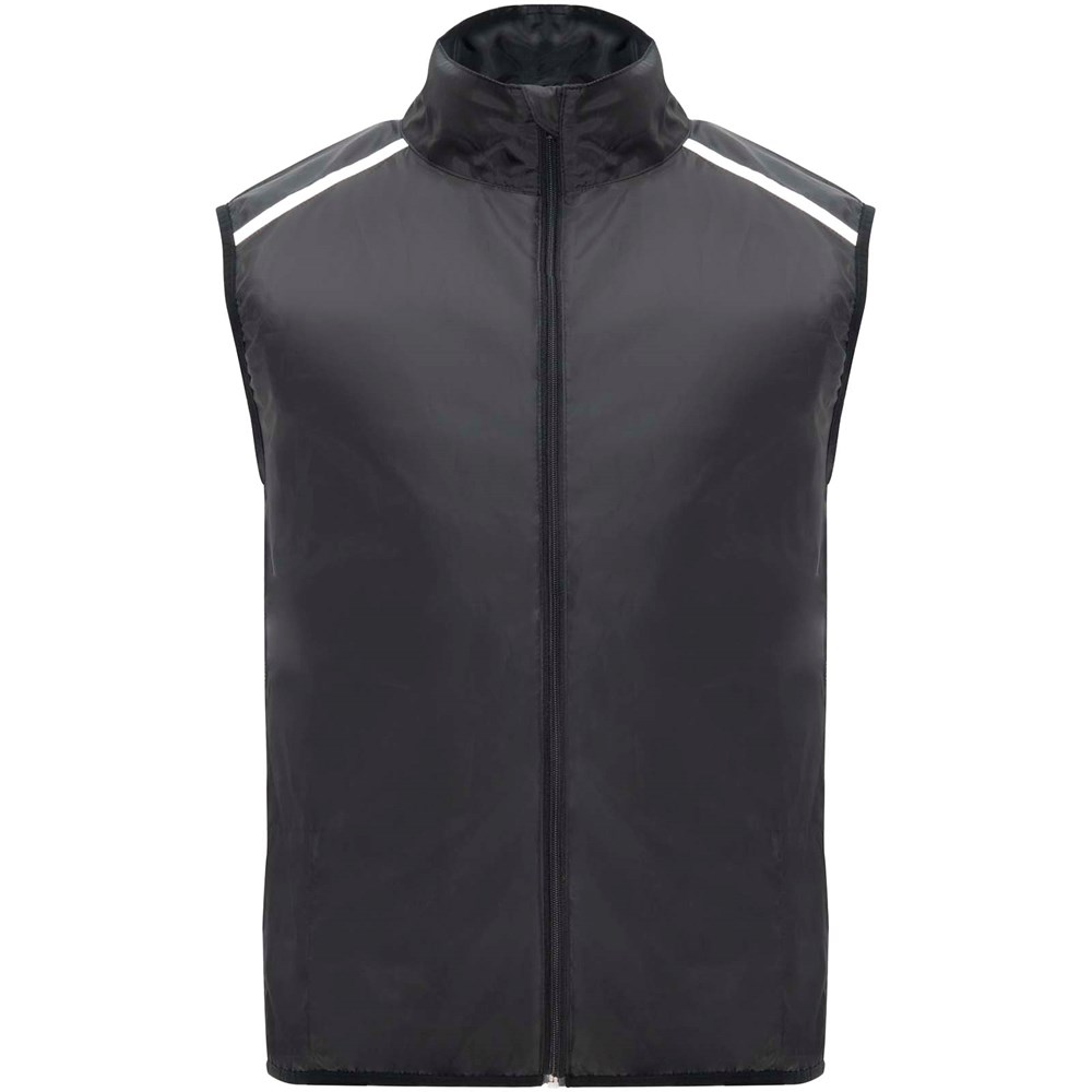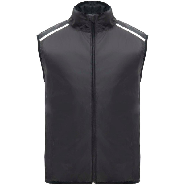 Winddicht en ademend. Rits aan de voorkant met bijpassende kinbeschermer. Elastische binding bij armsgat en aan de onderkant. Onderste deel van de rug is van micro-geperforeerde stof. Goed zichtbare details op de boven-, voor- en achterkant. Zakje met elastische band om de bodywarmer op te bergen en om de pols te dragen. Verwijderbaar label.