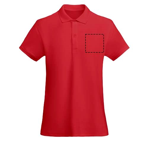 Getailleerd polo shirt met korte mouwen voor dames van biologisch katoen. 1x1 geribbelde kraag en mouwafwerking. 2-knopen boord. Verstevigde afgedekte naden in de kraag. Zijsplitten aan de zoom. Verwijderbaar label. Het model is 174 cm en draagt maat S.