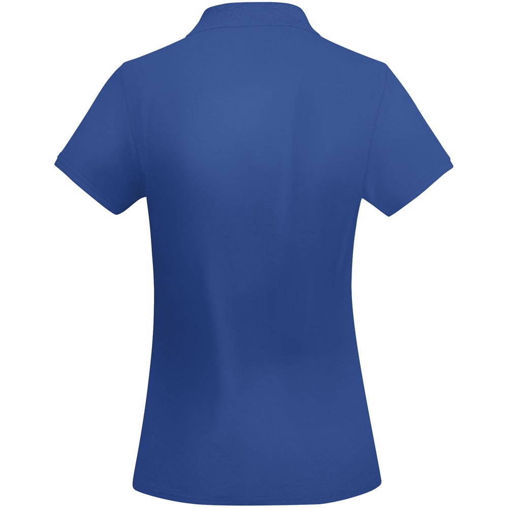Getailleerd polo shirt met korte mouwen voor dames van biologisch katoen. 1x1 geribbelde kraag en mouwafwerking. 2-knopen boord. Verstevigde afgedekte naden in de kraag. Zijsplitten aan de zoom. Verwijderbaar label. Het model is 174 cm en draagt maat S.
