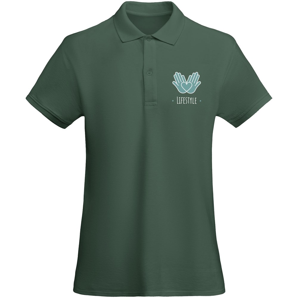 Getailleerd polo shirt met korte mouwen voor dames van biologisch katoen. 1x1 geribbelde kraag en mouwafwerking. 2-knopen boord. Verstevigde afgedekte naden in de kraag. Zijsplitten aan de zoom. Verwijderbaar label. Het model is 174 cm en draagt maat S.