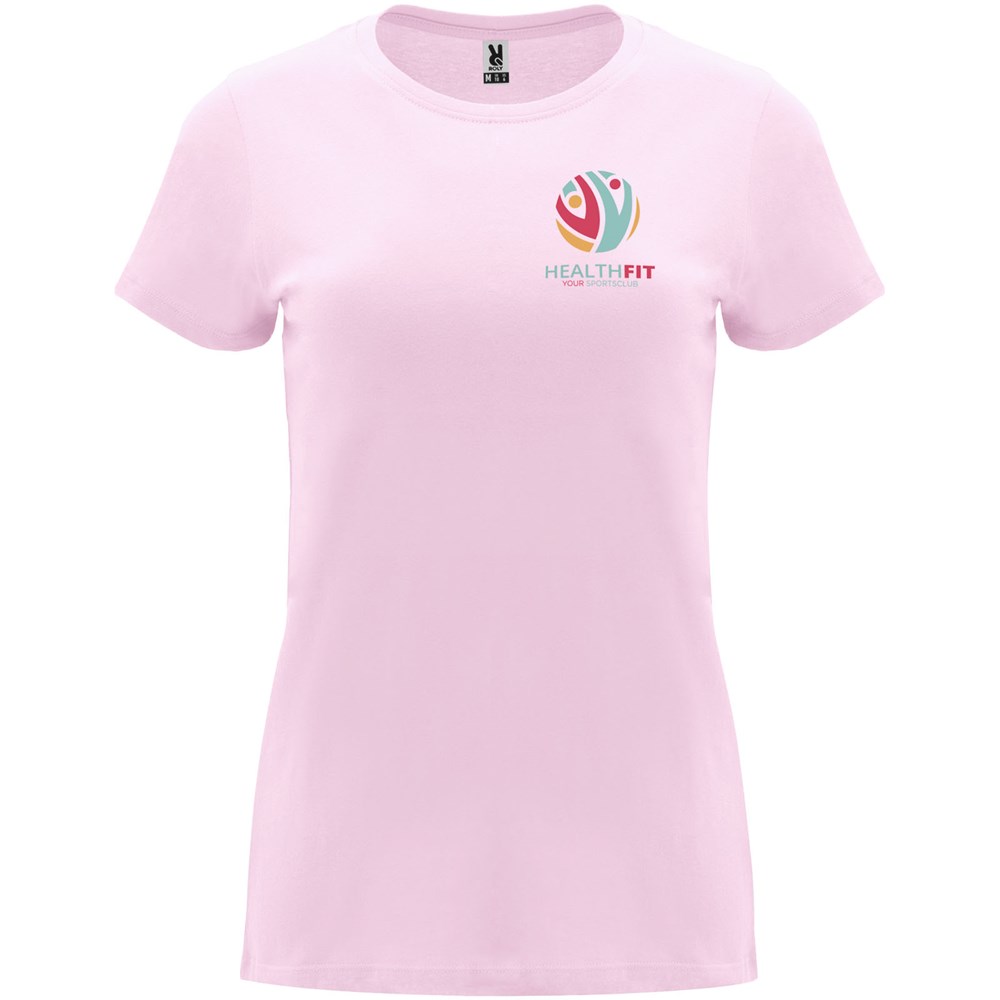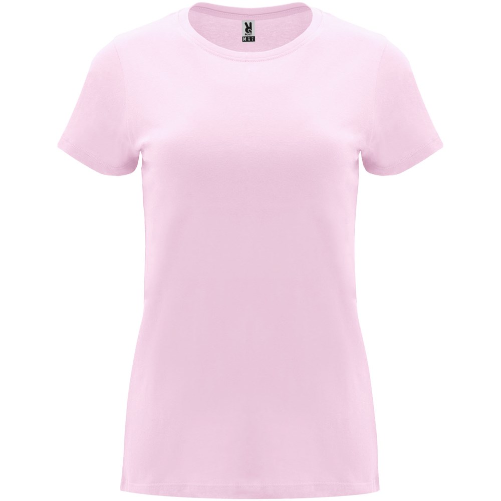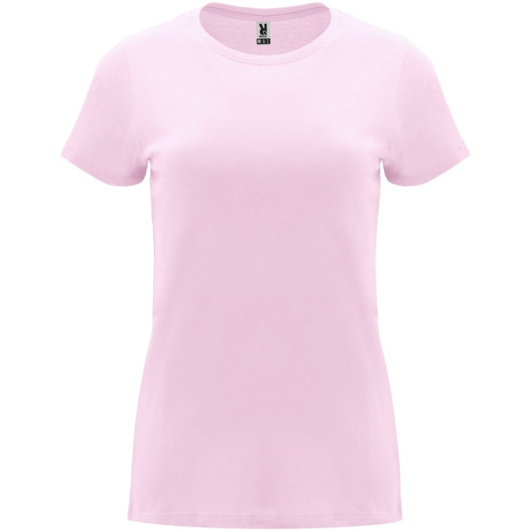 Getailleerd T-shirt met korte mouwen voor dames. 1x1 geribde ronde hals. Versterkte bedekte naden in de kraag. Verwijderbaar etiket.