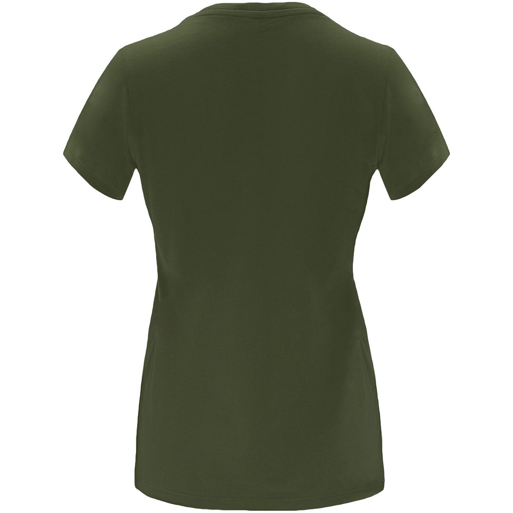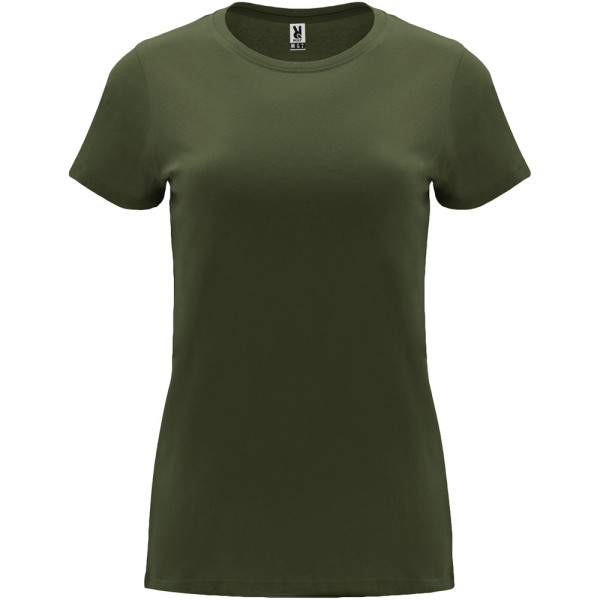 Getailleerd T-shirt met korte mouwen voor dames. 1x1 geribde ronde hals. Versterkte bedekte naden in de kraag. Verwijderbaar etiket.