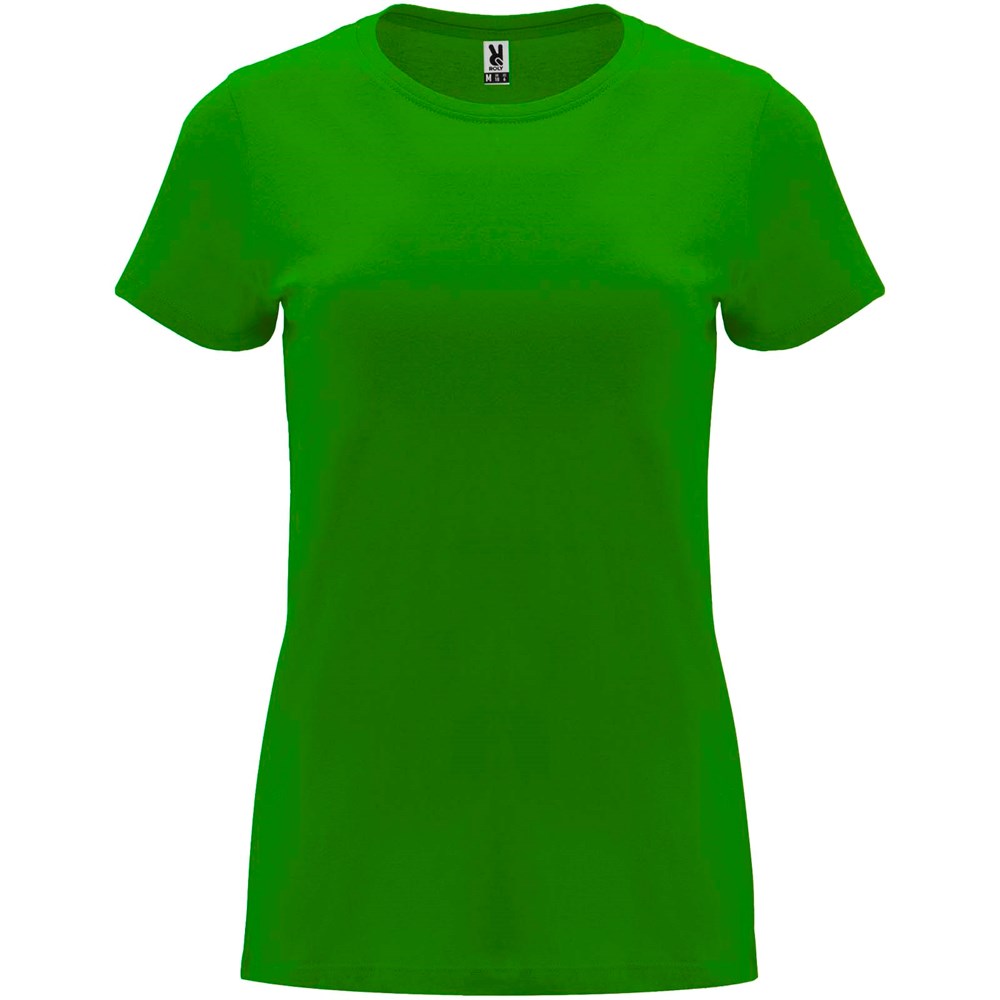 Getailleerd T-shirt met korte mouwen voor dames. 1x1 geribde ronde hals. Versterkte bedekte naden in de kraag. Verwijderbaar etiket.