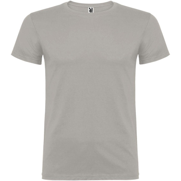 T-shirt met korte mouwen en dubbellaagse ronde hals van elastaan, gemaakt van buisvormige stof voor volwassenen. Versterkte bedekte naden in de kraag. Verwijderbaar etiket. Het model is 190 cm en draagt maat L.