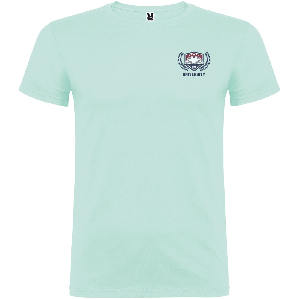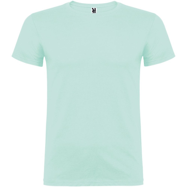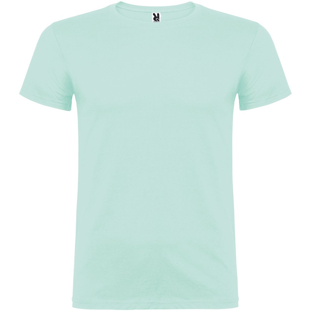 T-shirt met korte mouwen en dubbellaagse ronde hals van elastaan, gemaakt van buisvormige stof voor volwassenen. Versterkte bedekte naden in de kraag. Verwijderbaar etiket. Het model is 190 cm en draagt maat L.