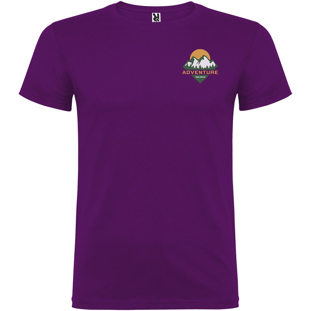 T-shirt met korte mouwen en dubbellaagse ronde hals van elastaan, gemaakt van buisvormige stof voor volwassenen. Versterkte bedekte naden in de kraag. Verwijderbaar etiket. Het model is 190 cm en draagt maat L.