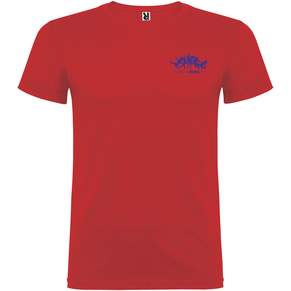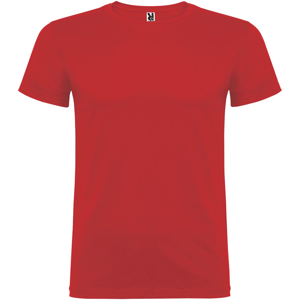 T-shirt met korte mouwen en dubbellaagse ronde hals van elastaan, gemaakt van buisvormige stof voor volwassenen. Versterkte bedekte naden in de kraag. Verwijderbaar etiket. Het model is 190 cm en draagt maat L.