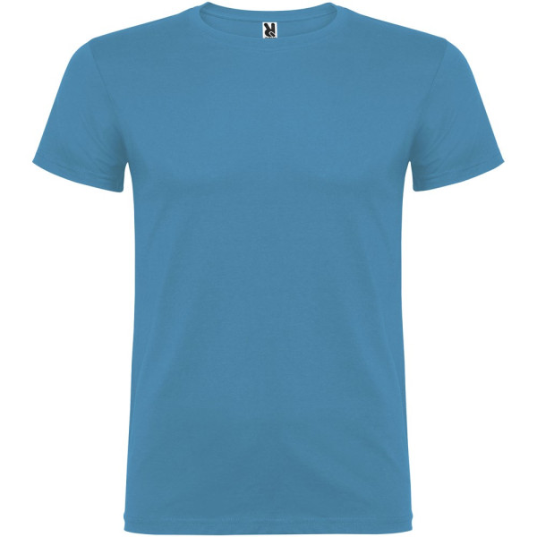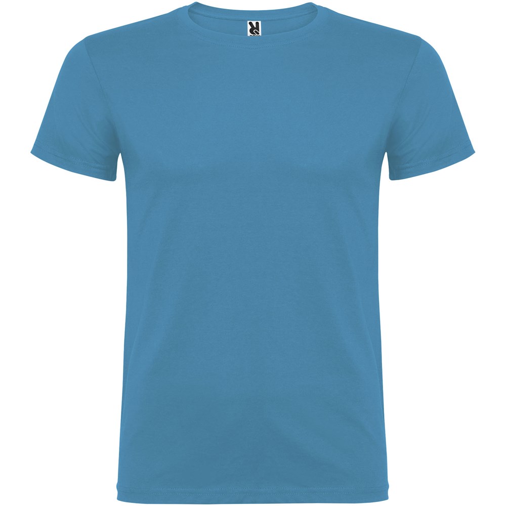 T-shirt met korte mouwen en dubbellaagse ronde hals van elastaan, gemaakt van buisvormige stof voor volwassenen. Versterkte bedekte naden in de kraag. Verwijderbaar etiket. Het model is 190 cm en draagt maat L.