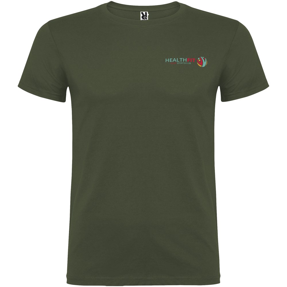 T-shirt met korte mouwen en dubbellaagse ronde hals van elastaan, gemaakt van buisvormige stof voor volwassenen. Versterkte bedekte naden in de kraag. Verwijderbaar etiket. Het model is 190 cm en draagt maat L.