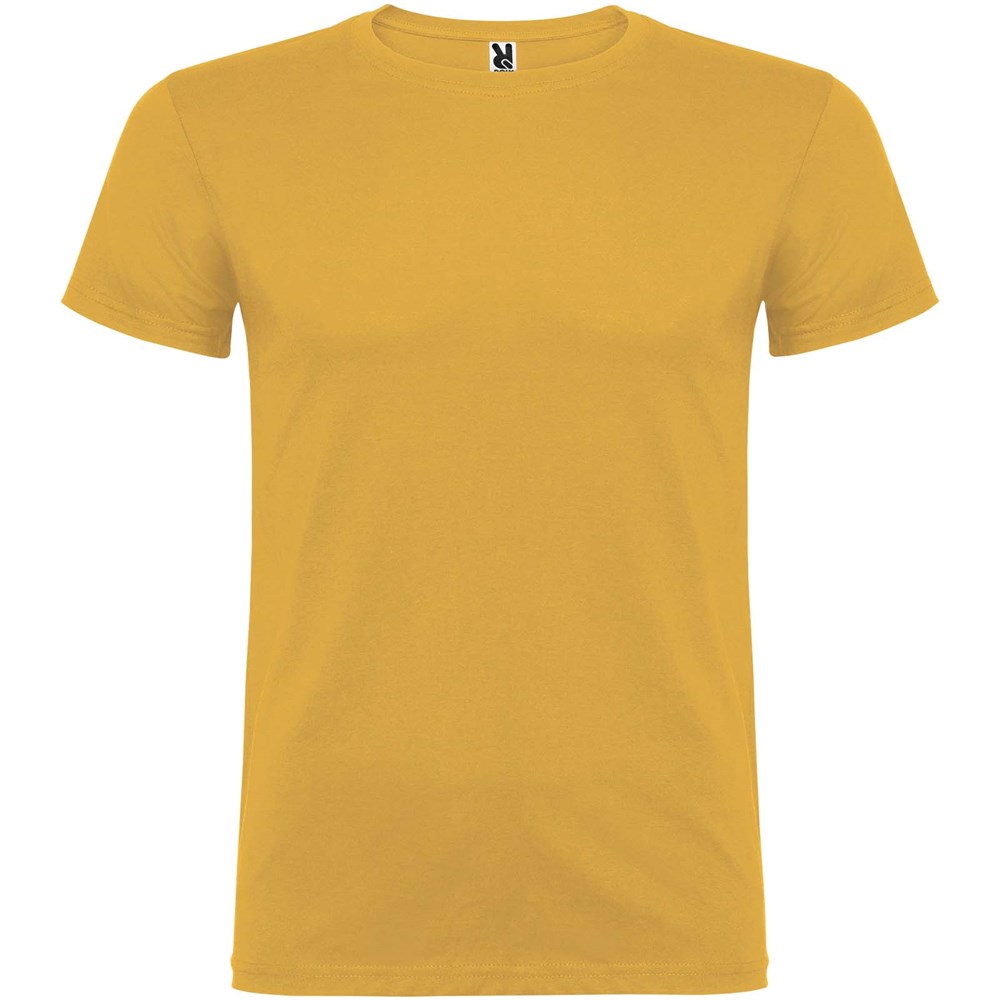 T-shirt met korte mouwen en dubbellaagse ronde hals van elastaan, gemaakt van buisvormige stof voor volwassenen. Versterkte bedekte naden in de kraag. Verwijderbaar etiket. Het model is 190 cm en draagt maat L.