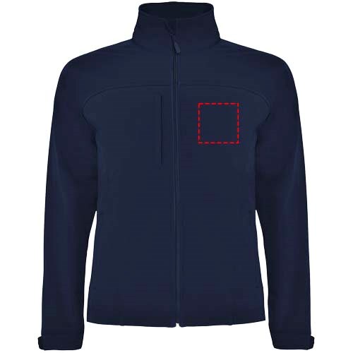 Drielaags softshelljack. Volledige rits met kinbeschermer en trekker. Buitenzak op de borst met rits en trekker. Buitenzakken met rits en trekker. Klittenbandsluitingen in manchetten. Snit of jukstuk op voorpand. Snit of jukstuk op rugpand. Zoom met elastisch koord en verstelbare stoppers aan de binnenkant. 1000 mm waterbestendig. Winddicht. Het model is 184 cm en draagt maat L.