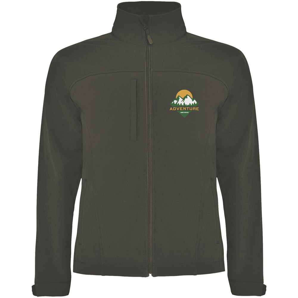 Drielaags softshelljack. Volledige rits met kinbeschermer en trekker. Buitenzak op de borst met rits en trekker. Buitenzakken met rits en trekker. Klittenbandsluitingen in manchetten. Snit of jukstuk op voorpand. Snit of jukstuk op rugpand. Zoom met elastisch koord en verstelbare stoppers aan de binnenkant. 1000 mm waterbestendig. Winddicht. Het model is 184 cm en draagt maat L.