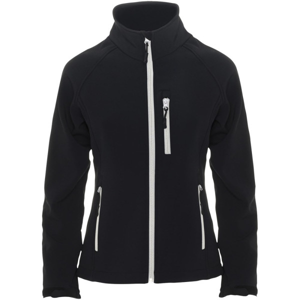 Tweelaags softshell met omgekeerde rits met verzegeld effect, met bijpassende kinbeschermer en ritstrekker. Drie buitenzakken met bijpassende rits en trekker. Klittenbandsluitingen in de manchetten. Onderzoom met elastisch trekkoord en stoppers. Winddichte stof. Waterafstotend. Kleedt slank af. Raglanmouwen. 1000 mm waterbestendig. Het model is 179 cm en draagt maat S.
