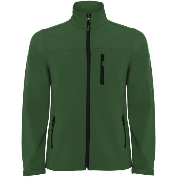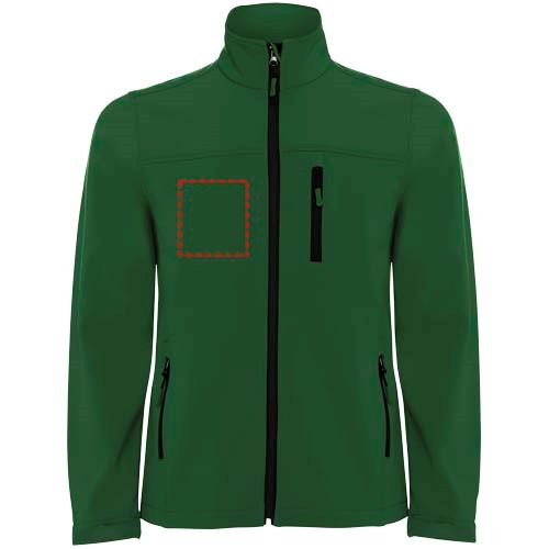 Tweelaags softshell. Omgekeerde rits met verzegeld effect, bijpassende kinbeschermer en ritstrekker. Uitgesneden detail op de borst. Drie zakken met rits en bijpassende trekker. Klittenbandsluitingen in de manchetten. Verstelbare zoom onderaan met elastisch trekkoord en stoppers. 1000 mm waterbestendig. Winddichte stof. Het model is 185 cm en draagt maat M.
