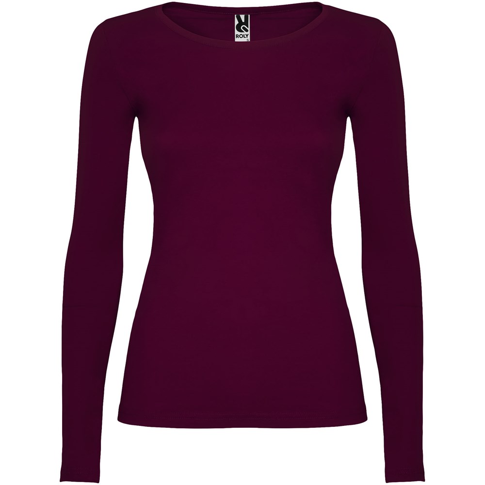 Half getailleerd T-shirt met lange mouwen en fijn afgezette hals. Geen manchetten. Zijnaden. Verwijderbaar etiket.