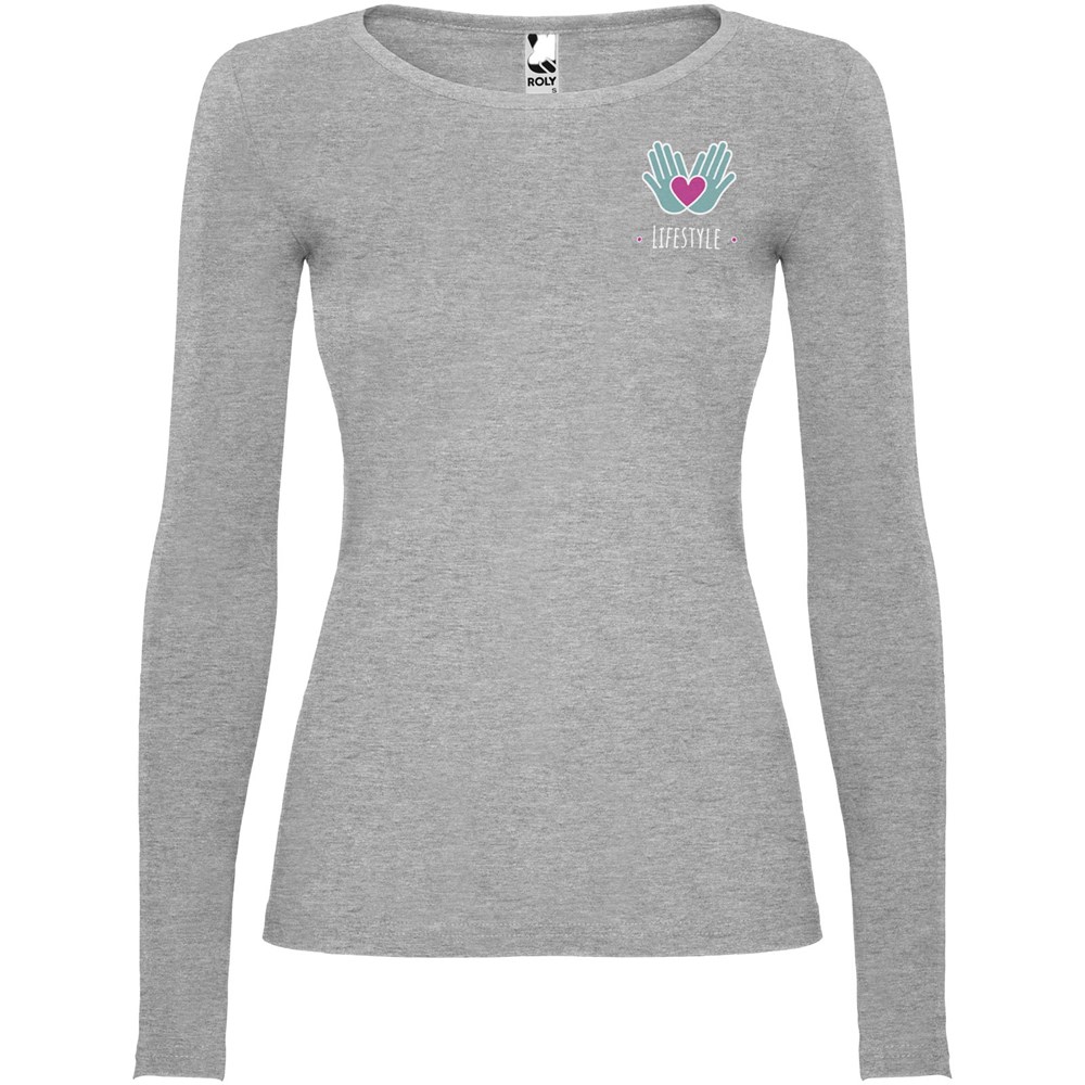 Half getailleerd T-shirt met lange mouwen en fijn afgezette hals. Geen manchetten. Zijnaden. Verwijderbaar etiket.