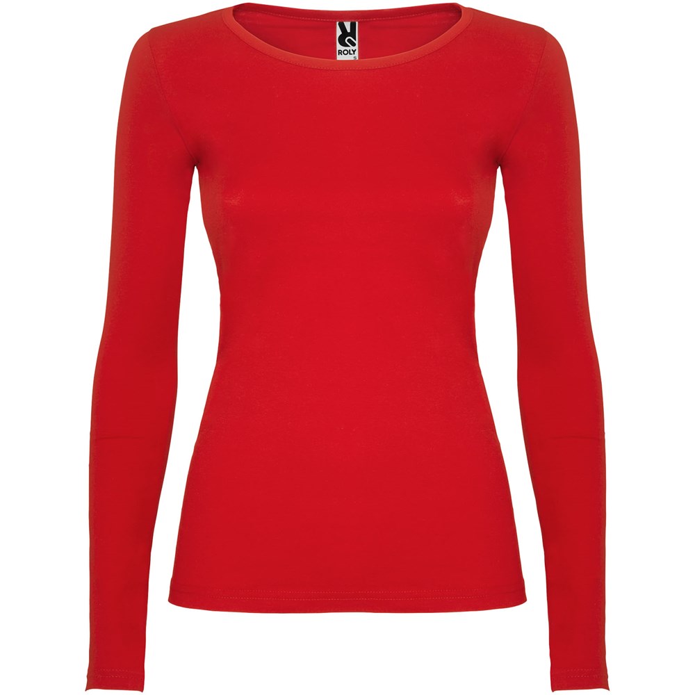 Half getailleerd T-shirt met lange mouwen en fijn afgezette hals. Geen manchetten. Zijnaden. Verwijderbaar etiket.