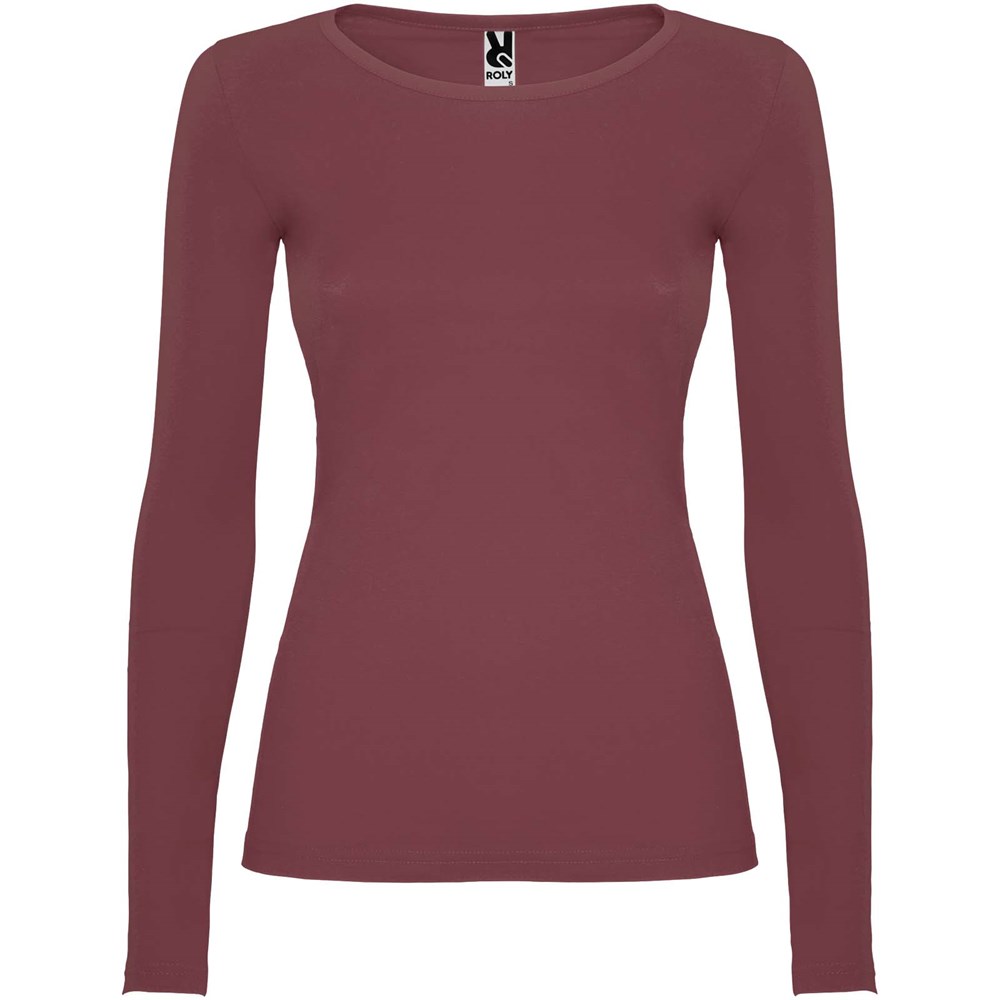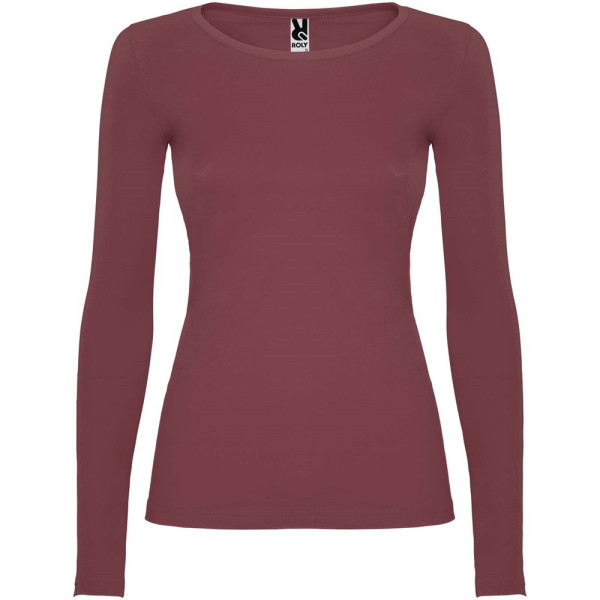 Half getailleerd T-shirt met lange mouwen en fijn afgezette hals. Geen manchetten. Zijnaden. Verwijderbaar etiket.