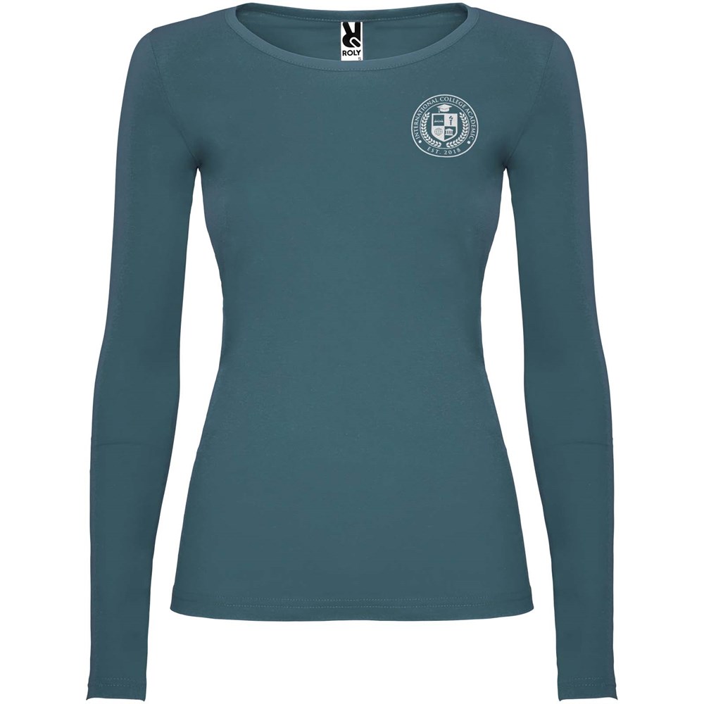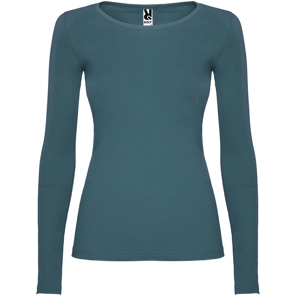Half getailleerd T-shirt met lange mouwen en fijn afgezette hals. Geen manchetten. Zijnaden. Verwijderbaar etiket.