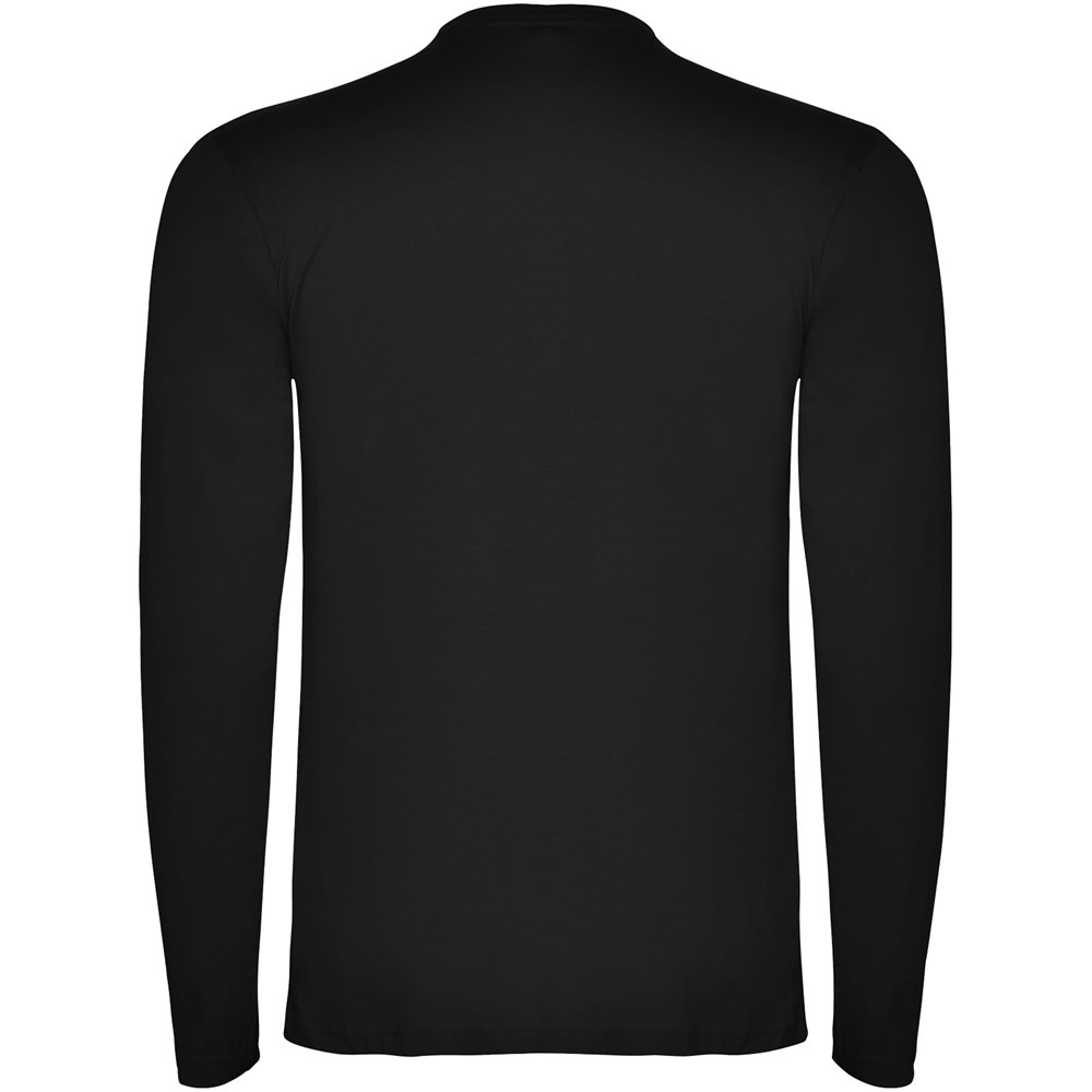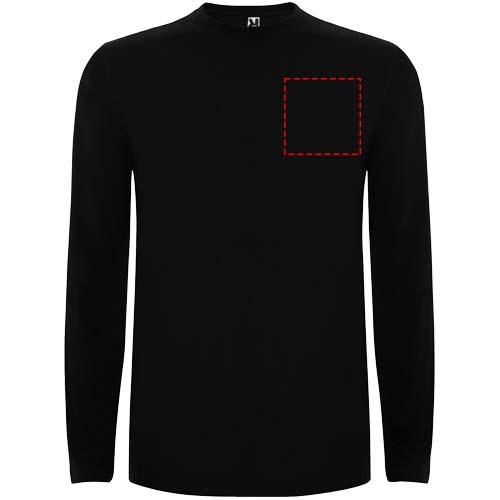 T-shirt met lange mouwen van buisvormige stof en 4-laags ronde hals. Versterkte bedekte naden in kraag en schouders. Geen manchetten. Verwijderbaar etiket. Buisvormig ontwerp in volwassen maten en zijnaden in kindermaten. Het model is 185 cm en draagt maat L.