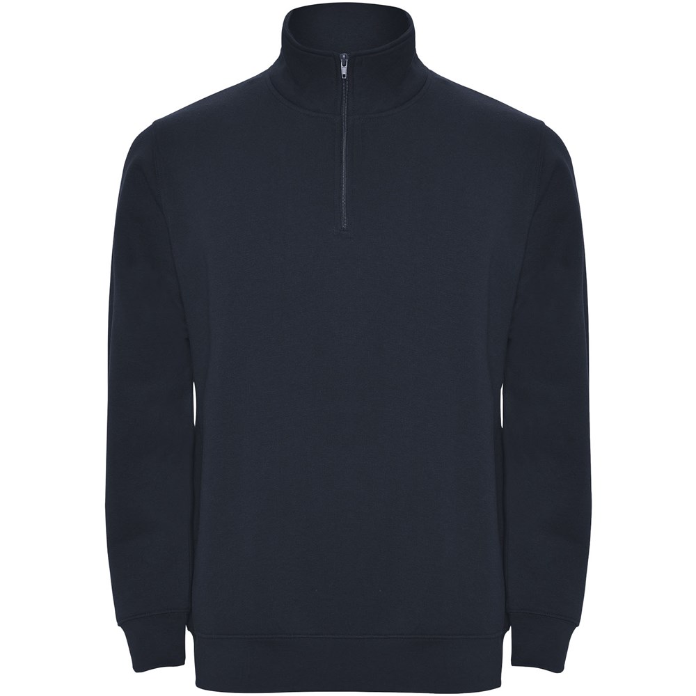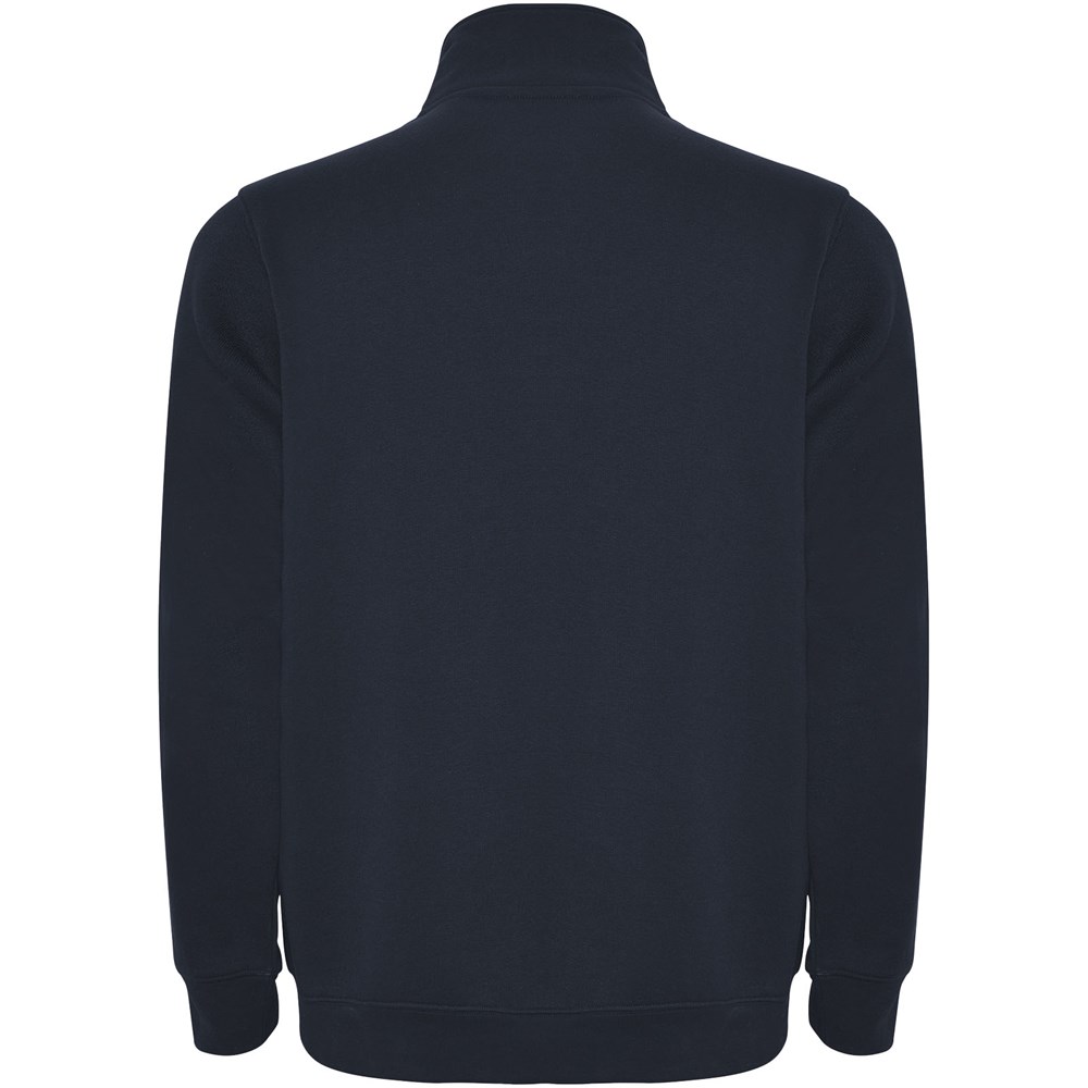 Sweatshirt met halve rits in dezelfde kleur en staande kraag. Binnenkant van de kraag in dezelfde kleur. Versterkte naadafdekkingen aan de binnenzijde van de kraag. Manchetten en tailleband in ribboord 1x1. Het model is 185 cm en draagt maat M.