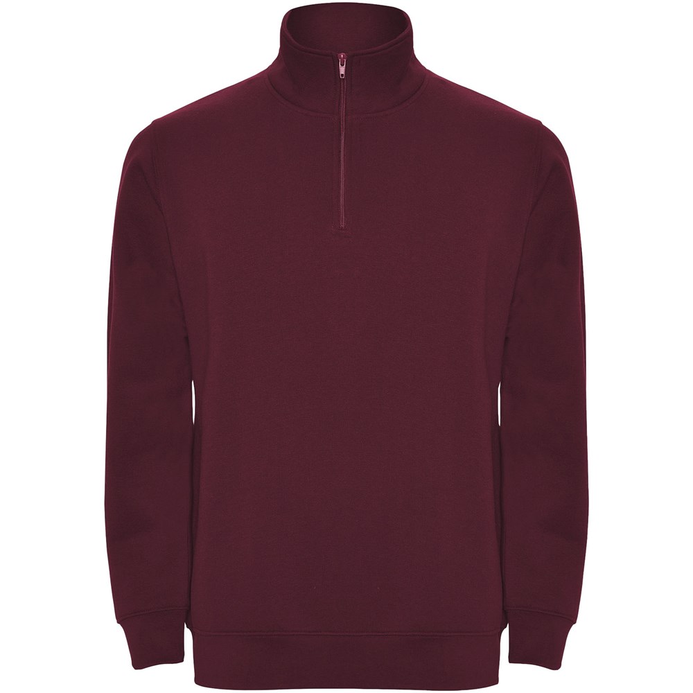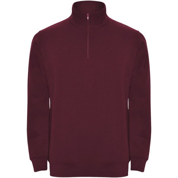 Sweatshirt met halve rits in dezelfde kleur en staande kraag. Binnenkant van de kraag in dezelfde kleur. Versterkte naadafdekkingen aan de binnenzijde van de kraag. Manchetten en tailleband in ribboord 1x1. Het model is 185 cm en draagt maat M.