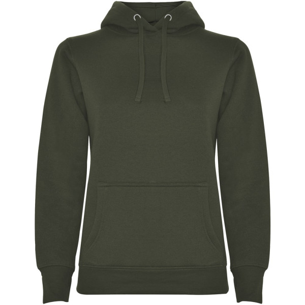 Getailleerd sweatshirt met tweekleurige capuchon van dubbele stof, contrasterend verstelbaar trekkoord, bedekte naden in de kraag en kangoeroezak. 1x1 elastaan rib in manchetten en zoom. Duimsplitdetail. Verwijderbaar etiket. Het model is 179 cm en draagt maat S.