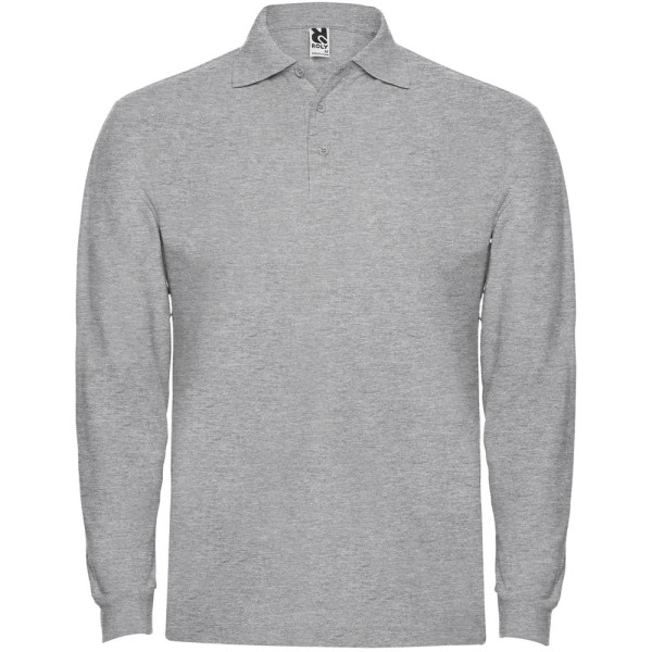 Poloshirt met lange mouwen, geribde kraag en manchetten, sluiting met drie knopen en 1x1 geribde manchetten van elastaan. Versterkte bedekte naden in de kraag. Optionele zak. Verwijderbaar etiket. Het model is 190 cm en draagt maat L.