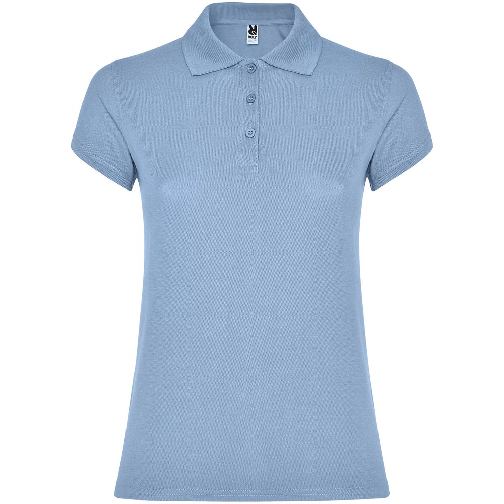 Poloshirt met korte mouwen voor dames. Versterkte bedekte naden in de binnenkant van de kraag. 1x1 geribde kraag en manchetten. Zijnaden en aansluitende snit. Smalle sluiting met drie knopen. Zijsplitten. Verwijderbaar etiket. Het model is 179 cm en draagt maat S.