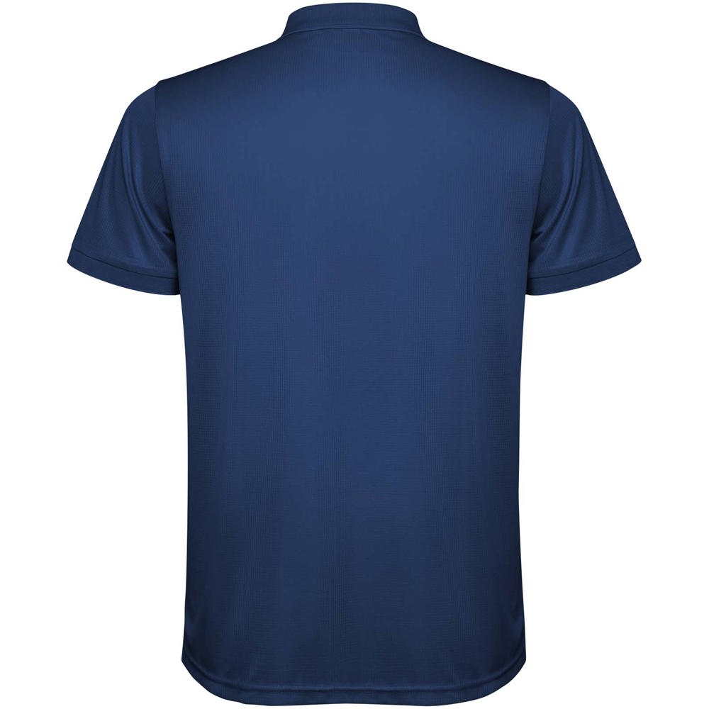 Herenpolo met korte mouwen. Versterkte bedekte naden in de binnenkraag. 1x1 geribde manchetten en kraag. Zijnaden. Knoopsluiting met 3 knopen en zijsplitten.