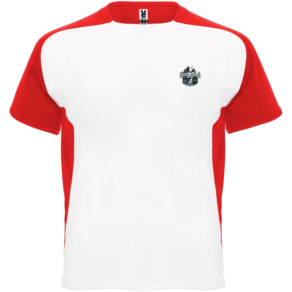 Technische en ademende stof. Ronde hals met bijpassende bedekte naden. Raglanmouwen en contrasterende zijpanelen. Verwijderbaar label.