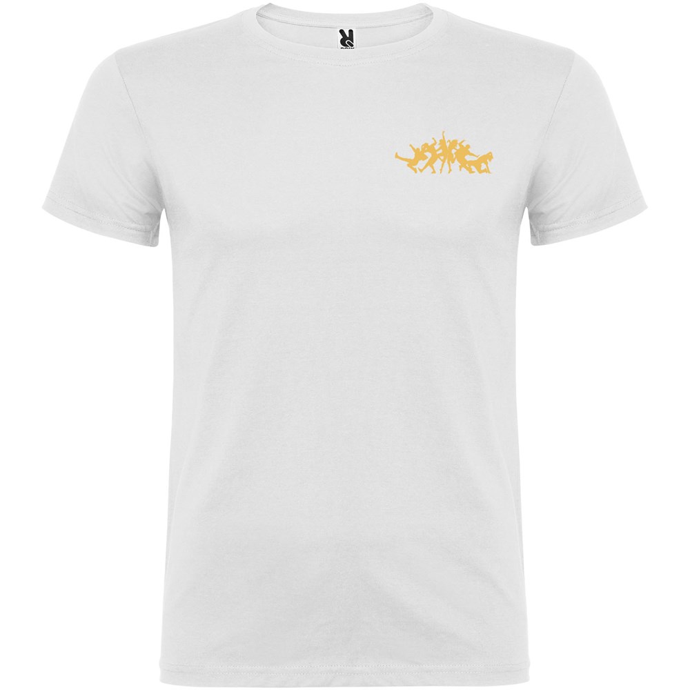 T-shirt met korte mouwen en dubbellaagse ronde hals van elastaan, gemaakt van met zijnaden. Versterkte bedekte naden in de kraag. Verwijderbaar etiket. Het model is 120 cm en draagt maat 5/6.