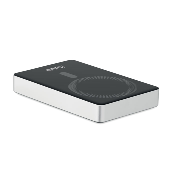 10.000mAh Powerbank van gerecycled aluminium met indicatielampje. Voorzien van 15W mgnetisch draadloos opladen en 20W PD bekabeld opladen voor snelle en efficiënte stroomlevering.