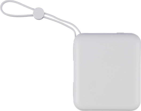 Gerecyclede ABS-powerbank met 10.000?mAh Li-ion batterij en 22,5W snellaaduitgang. Voorzien van een geïntegreerd TPE-draagkoord dat ook dienst doet als oplaadkabel met Lightning- en Type-C-connectoren. Uitgerust met een digitale LED-display bovenop voor het weergeven van de batterijcapaciteit. Inclusief Type-C in-/uitgang en Type-A ingang. Biedt bescherming tegen oververhitting, kortsluiting, overspanning en overstroom. Voorzien van label met gerecycleerd ABS-logo op de achterzijde. Individueel verpakt in een bruine kartonnen doos met zijdepapier aan de binnenzijde.