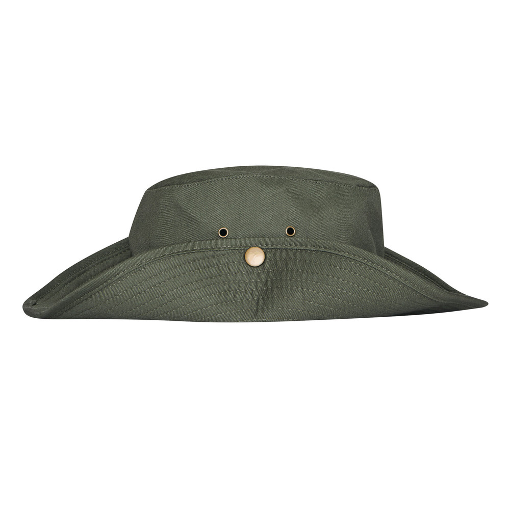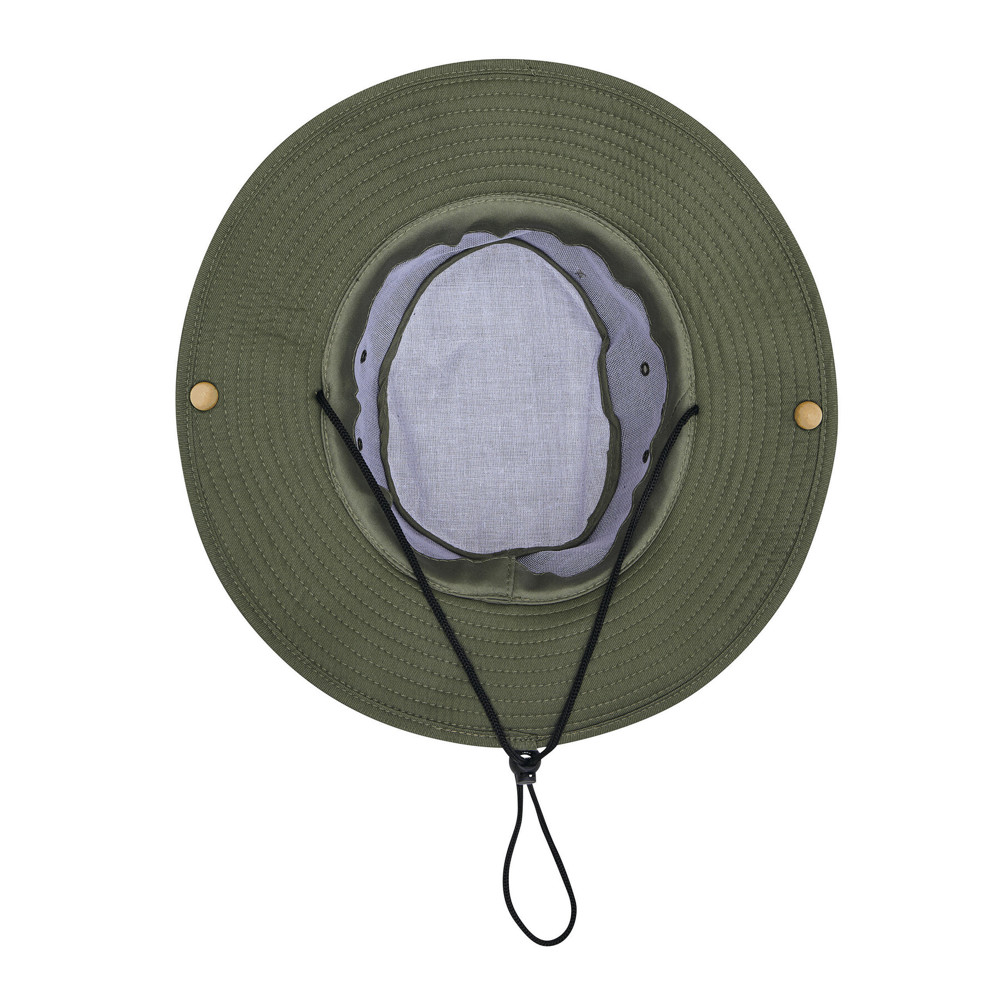 Safarihoed SUNDALE: rand kan met een drukknoop aan de zijkanten omhoog worden geklapt, 4 ventilatiegaatjes van metaal, kinband met kunststof stopper om aan de hoofdomtrek aan te passen